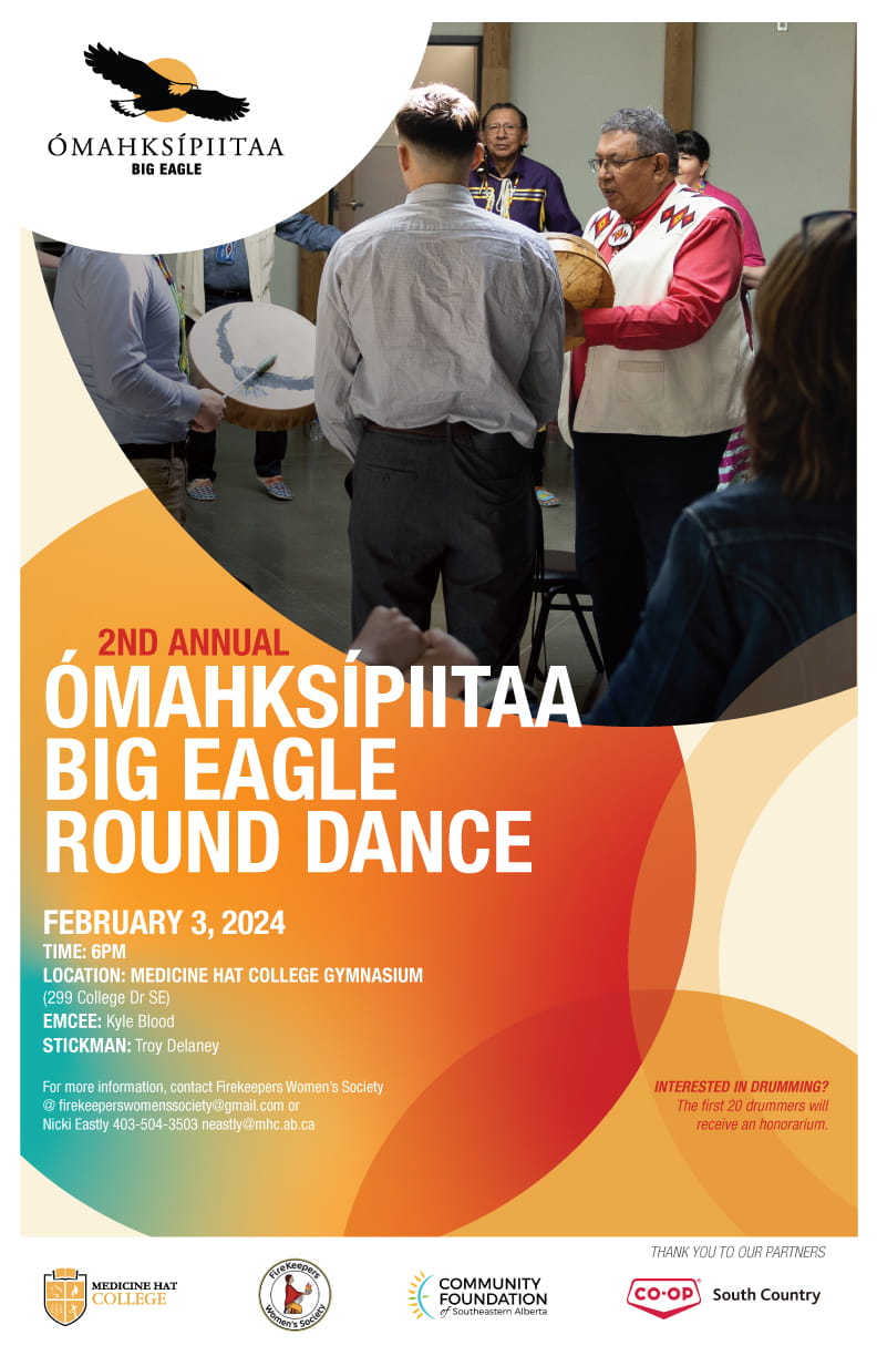 In partnership with the Firekeeper’s Women’s Society and supported by Community Foundation of South Eastern Alberta and South Country Co-op, the event will align closely with Blackfoot tradition and is open to community members of all ages, religions, and backgrounds.