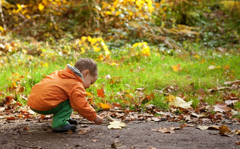 • Use leaves: Encourage your child to help move leaves into a pile and jump into them or throw the leaves in the air and encourage your child to see how many they can catch as they fall.