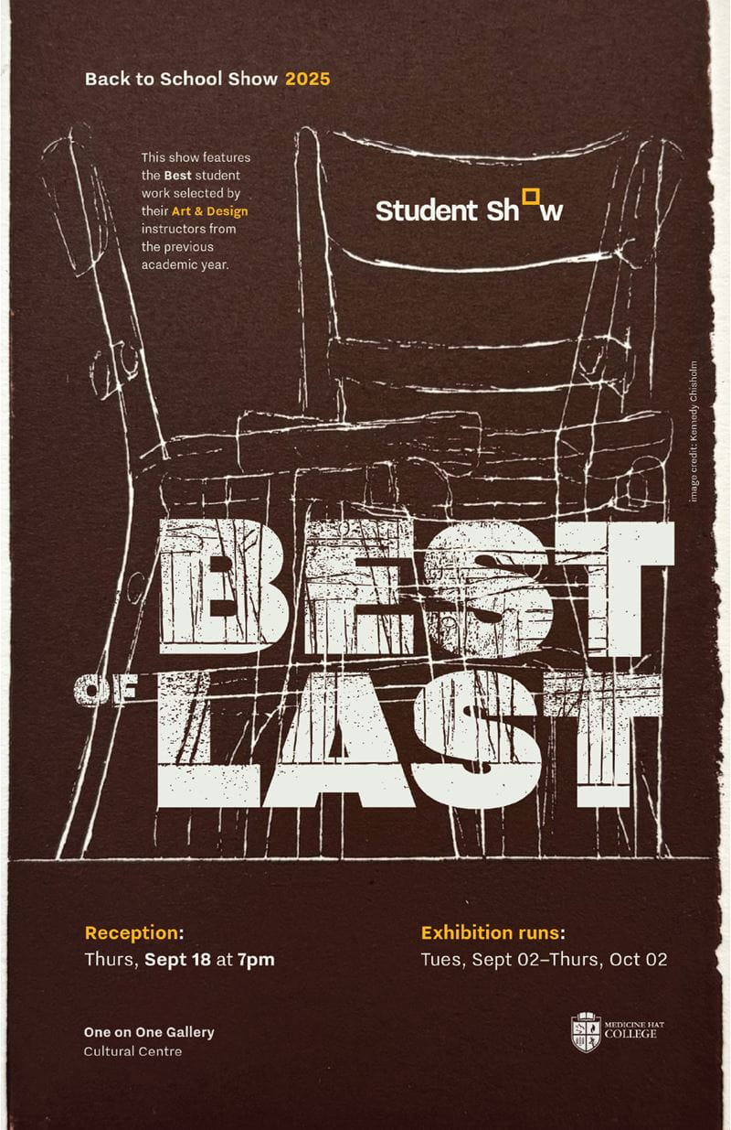 Medicine Hat College is now featuring its annual art show, Best of Last, in the One on One Gallery at the Cultural Centre, highlighting stand-out student work. Artwork was chosen for the show by art and design faculty from the students’ previous academic year.